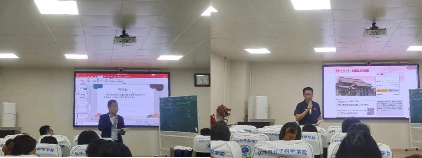 陈妍、朱冬梅、王宁佳、彭静珂四位同学分别讲授了“铁及其化合物”和“盐类的水解”。两位老师充分肯定了四位同学的教育技能、素养、课堂设计及框架构建。黄军老师指出,课堂要以学生为中心,老师要根据课堂情况调整授课节奏,积极发挥引导作用,启发学生思考,而不能一味依靠课件。王磊老师强调,课前准备要充分,课堂知识展开要有铺垫,课堂举例要贴近生活。