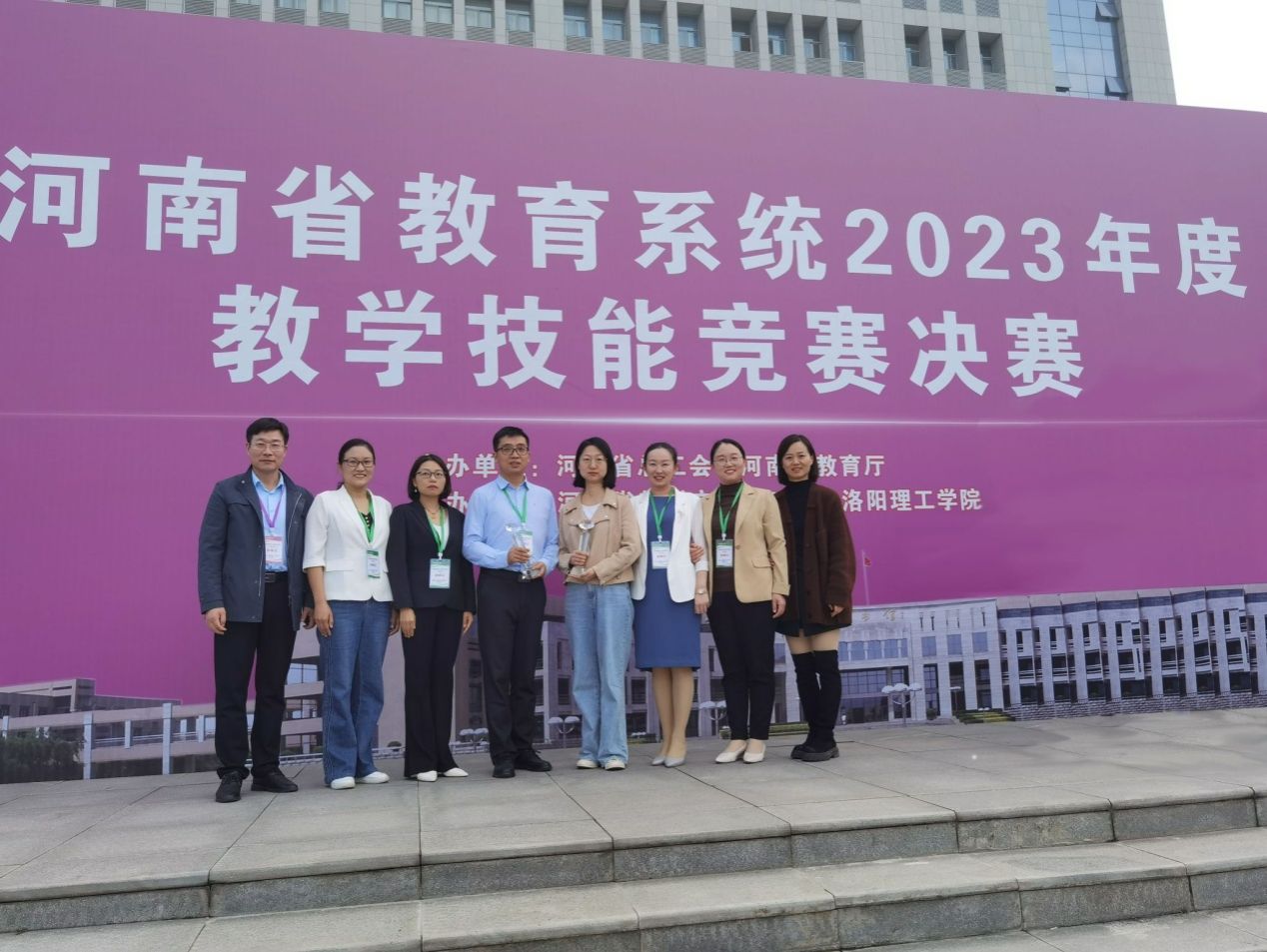 教师付记亚获得一等奖,同时被授予“河南省优秀教学标兵”荣誉称号并获颁奖杯、奖章。