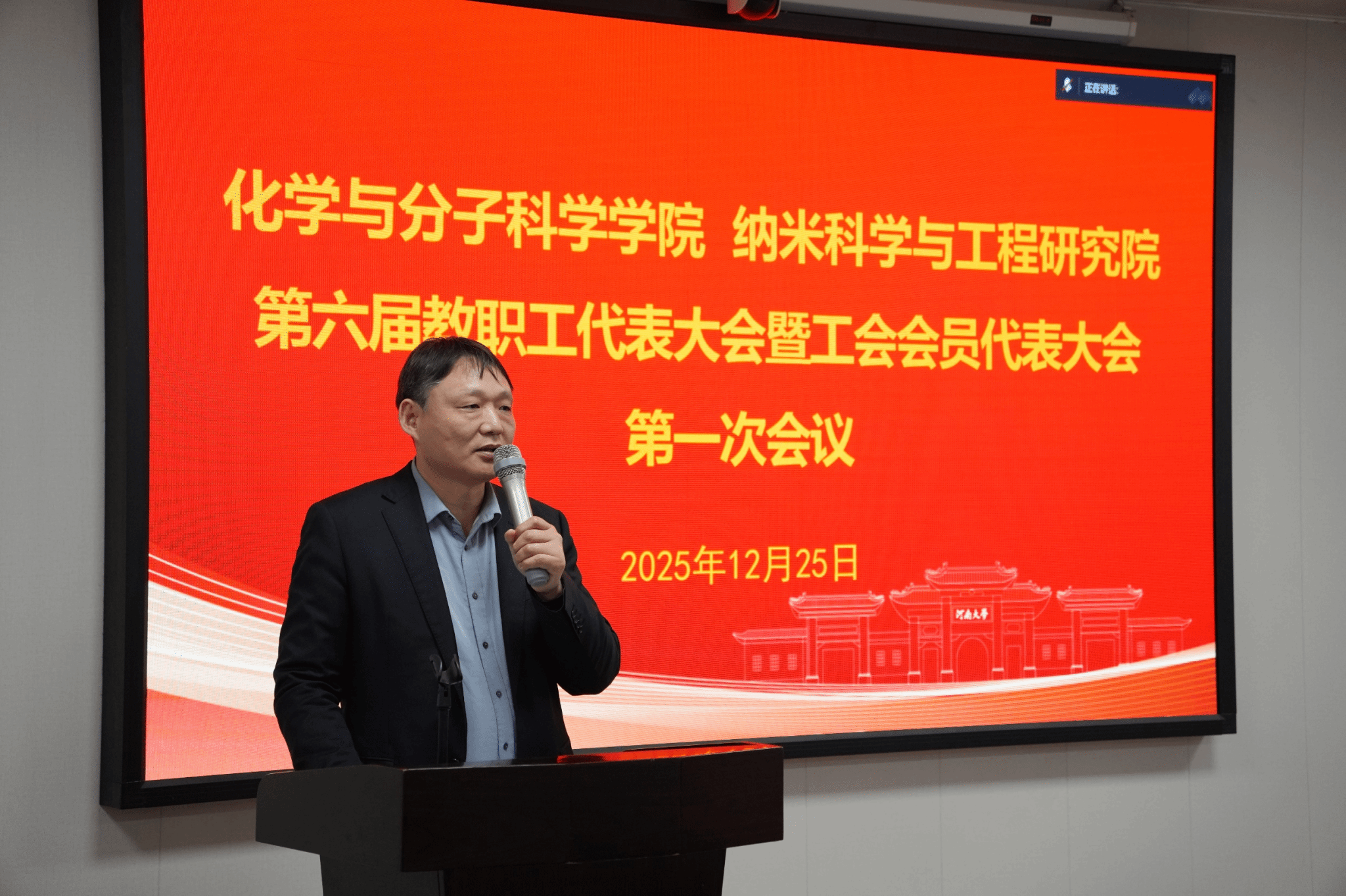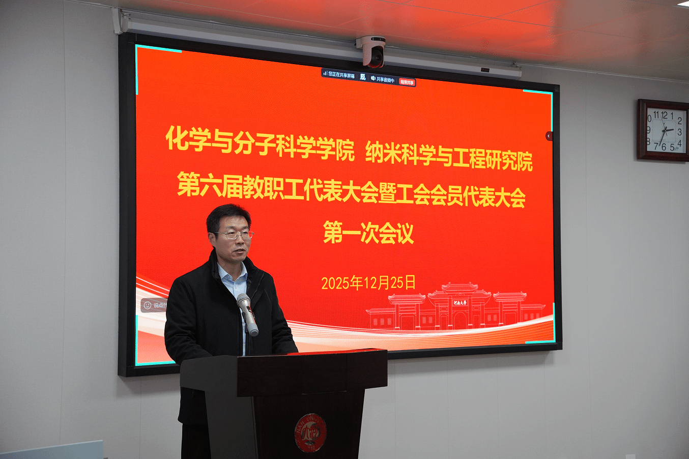 (以下简称学院)、纳米科学与工程研究院(以下简称研究院)第六届教职工代表大会暨工会会员代表大会第一次会议在学院226会议室召开。校工会副主席徐飞出席会议,学院和研究院正式代表、特邀嘉宾、列席代表参加会议。会议由学院党委副书记、分工会主席马文海主持。
