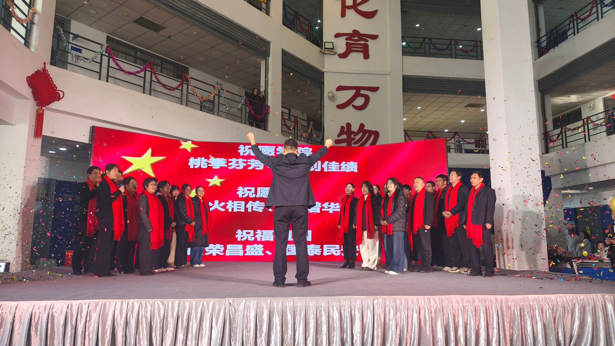会场经精心布置尽显新年氛围:缤纷的拉花、璀璨的灯笼、轻盈的气球错落点缀,处处洋溢着喜庆气息;现场座无虚席,师生们满怀期待,欢快的节日氛围迅速弥漫全场。