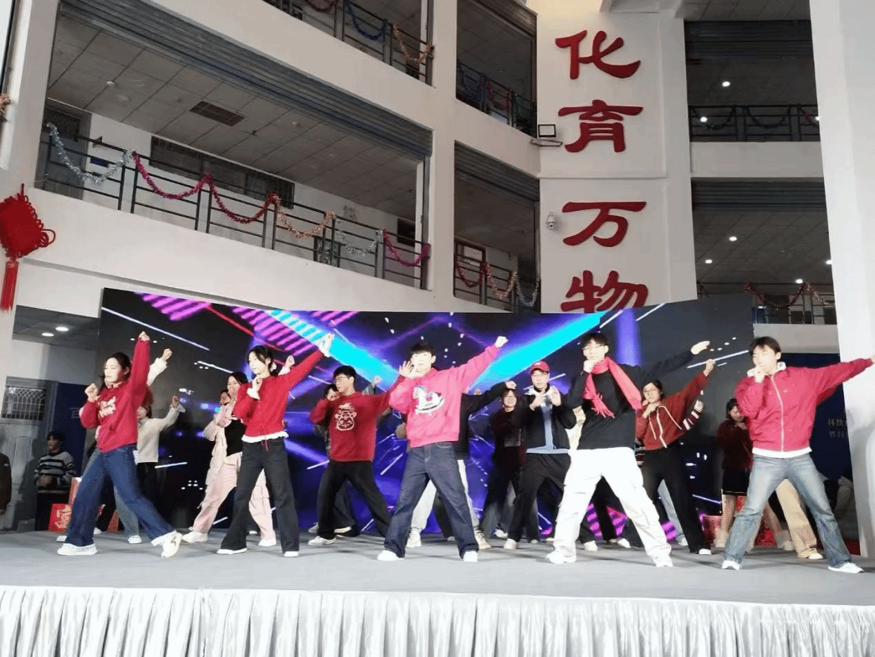 2023级本科生付中元与吴飞扬的吉他弹唱《平凡之路》、本科2025级的舞蹈《你要跳舞吗》、2025级研究生袁东超的独唱《青花》、学生会部长层的歌曲串烧、硕士2024级的舞蹈《相亲相爱》依次亮相,一个个精彩节目接连绽放,将现场的欢乐氛围烘托得愈发浓烈。