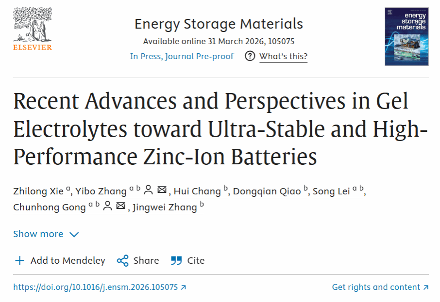 本科生解志龙以第一作者身份撰写的综述论文《Recent Advances and Perspectives in Gel Electrolytes toward Ultra-Stable and High-Performance Zinc-Ion Batteries》,发表在储能领域国际顶级期刊《Energy Storage Materials》(中科院材料科学一区TOP,IF:20.2)。该论文由亚洲视频