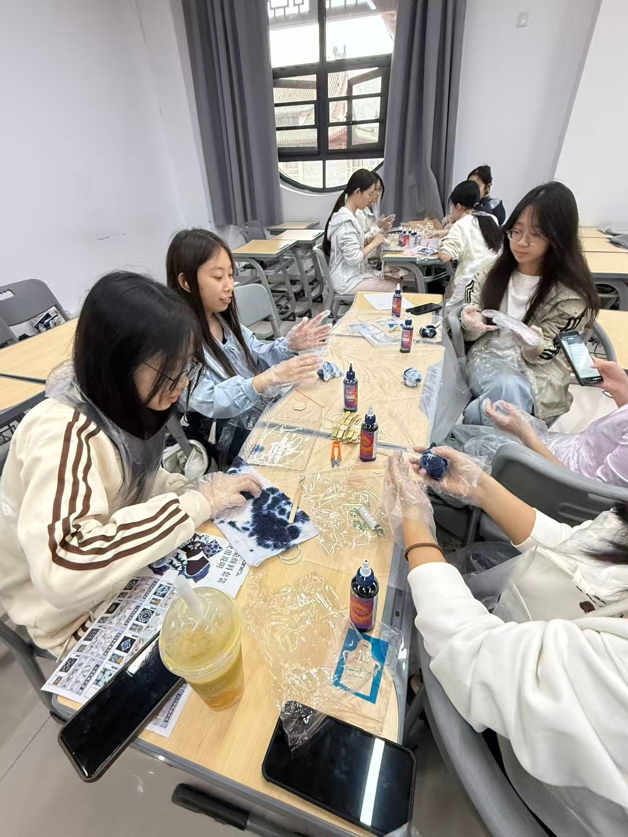 巧折素布间,晕染千般色。化学类三班开展非遗扎染文体活动,同学们围坐一堂,认真聆听扎染非遗文化知识讲解,亲手体验折叠、捆扎、染色等完整制作过程,将匠心与巧思晕染成一件件独一无二的蓝白佳作。活动现场氛围轻松愉悦,大家在指尖流转间感受传统手工艺的深厚底蕴,在协作探讨中锻炼动手实践与创新能力,在欢声笑语里增进交流互动,既传承了非遗文化、厚植了文化自信,也进一步凝聚了班级情谊。