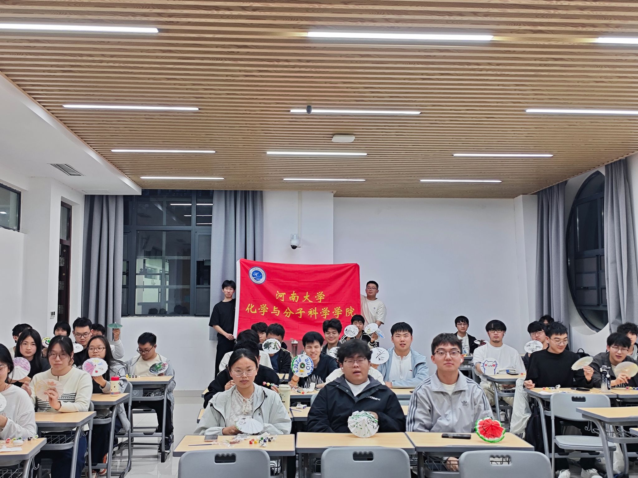 手执油纸伞,绘就心头意。化学类一班开展纸伞DIY文体活动,同学们相聚一堂、其乐融融,以笔为媒、以色彩为韵,在传统油纸伞面上尽情挥洒创意,将心中巧思与真挚心意,化作一幅幅独一无二的手绘作品。活动现场氛围温馨热烈,大家在手作实践中感受传统手工艺的独特魅力,在欢声笑语中放松身心、增进交流,让传统文化在青春指尖焕发新的生机。