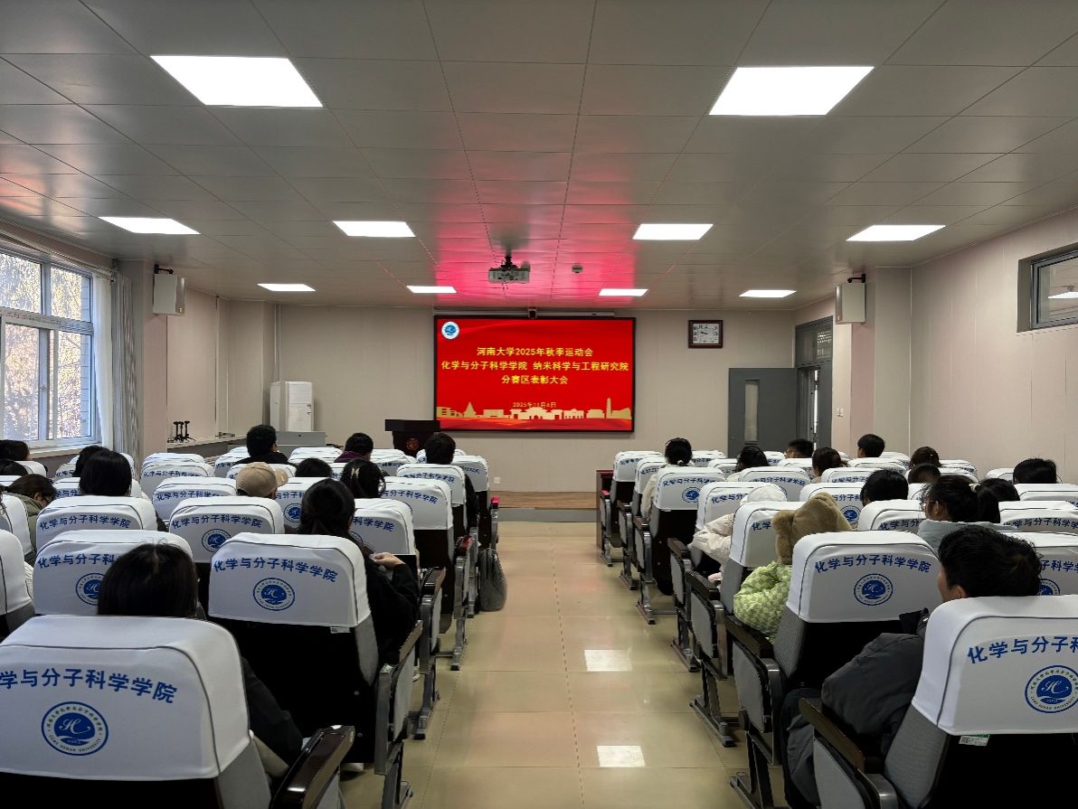 、纳米科学与工程研究院分赛区表彰大会在学院226报告厅隆重举行。此次大会旨在对运动会中取得显著成绩的运动员进行表彰。学院党委书记常凤香、纳米科学与工程研究院学生工作负责人史建武、团委副书记田梦、以及获奖运动员代表出席大会,2025级本科生辅导员王钏宇携2025级获奖运动员在郑州校区线上参会,本次会议由党委副书记马文海主持。