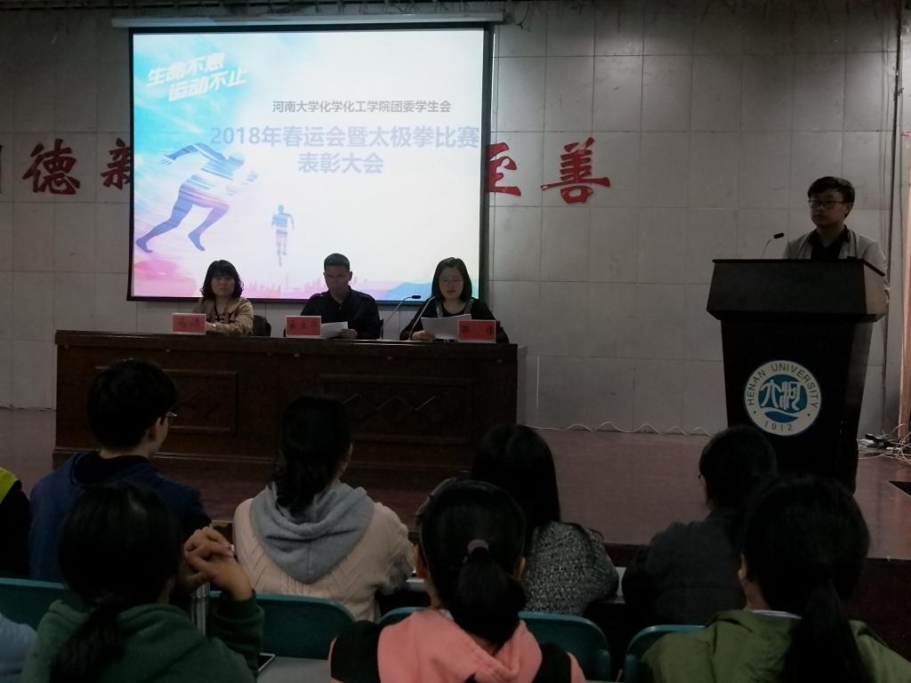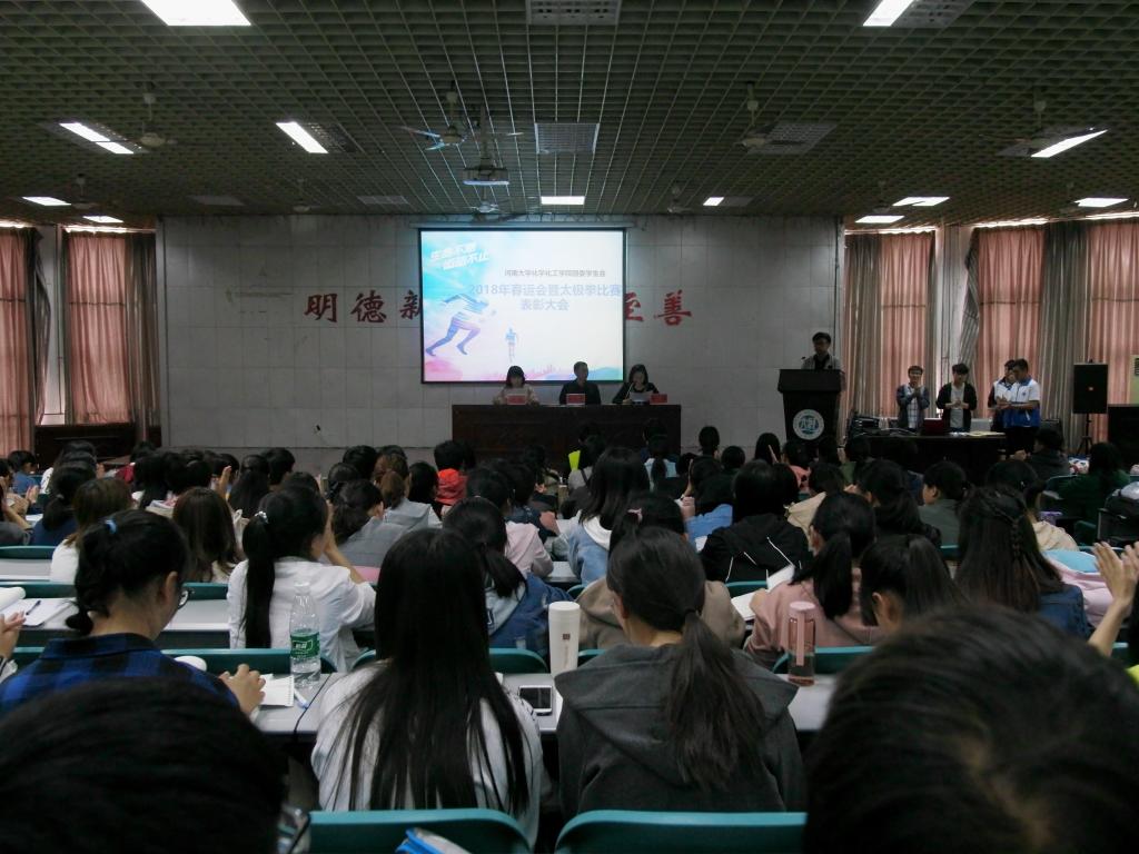 在学术报告厅举办2018春运会暨太极拳比赛表彰大会。学院党委副书记宋立华,团委负责人兼15级辅导员郭佳,17级辅导员马洁受邀出席表彰大会,17级全体及部分春运会表现优异者与会,大会由团委学生会主席李红涛主持。