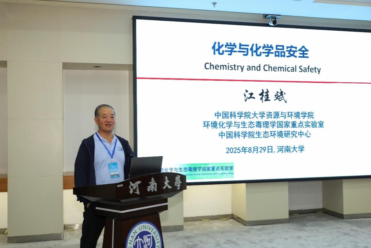 中国科学院院士、中国科学院生态环境研究中心江桂斌研究员以《化学与化学品安全》为题作大会首场报告,系统阐述我国在新污染物研究与管控方面的重要突破。随后,海南大学孙轶斐教授、南开大学祝凌燕教授、四川大学吕弋教授和北京大学白玉教授分别围绕CO₂催化转化、全氟化合物污染、金属稳定同位素标记和单细胞代谢组分析等前沿课题分享最新研究成果。